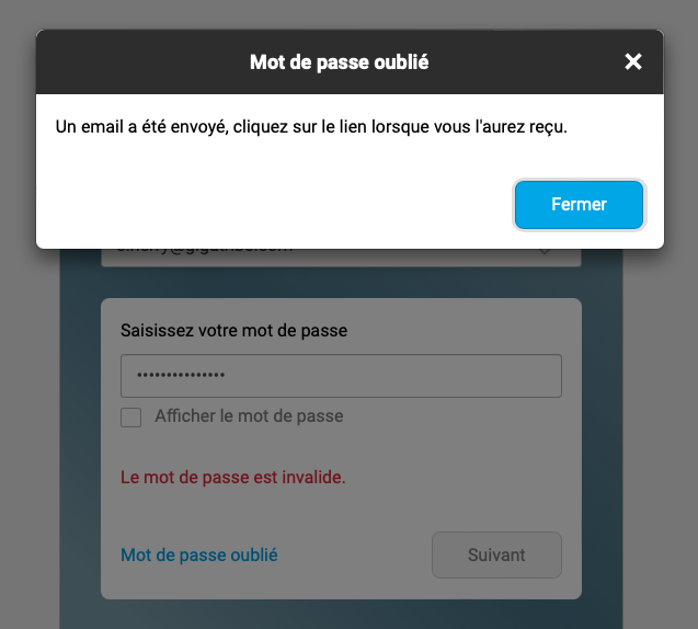 Une nouvelle fenêtre vous confirmera l’envoi de l’email.